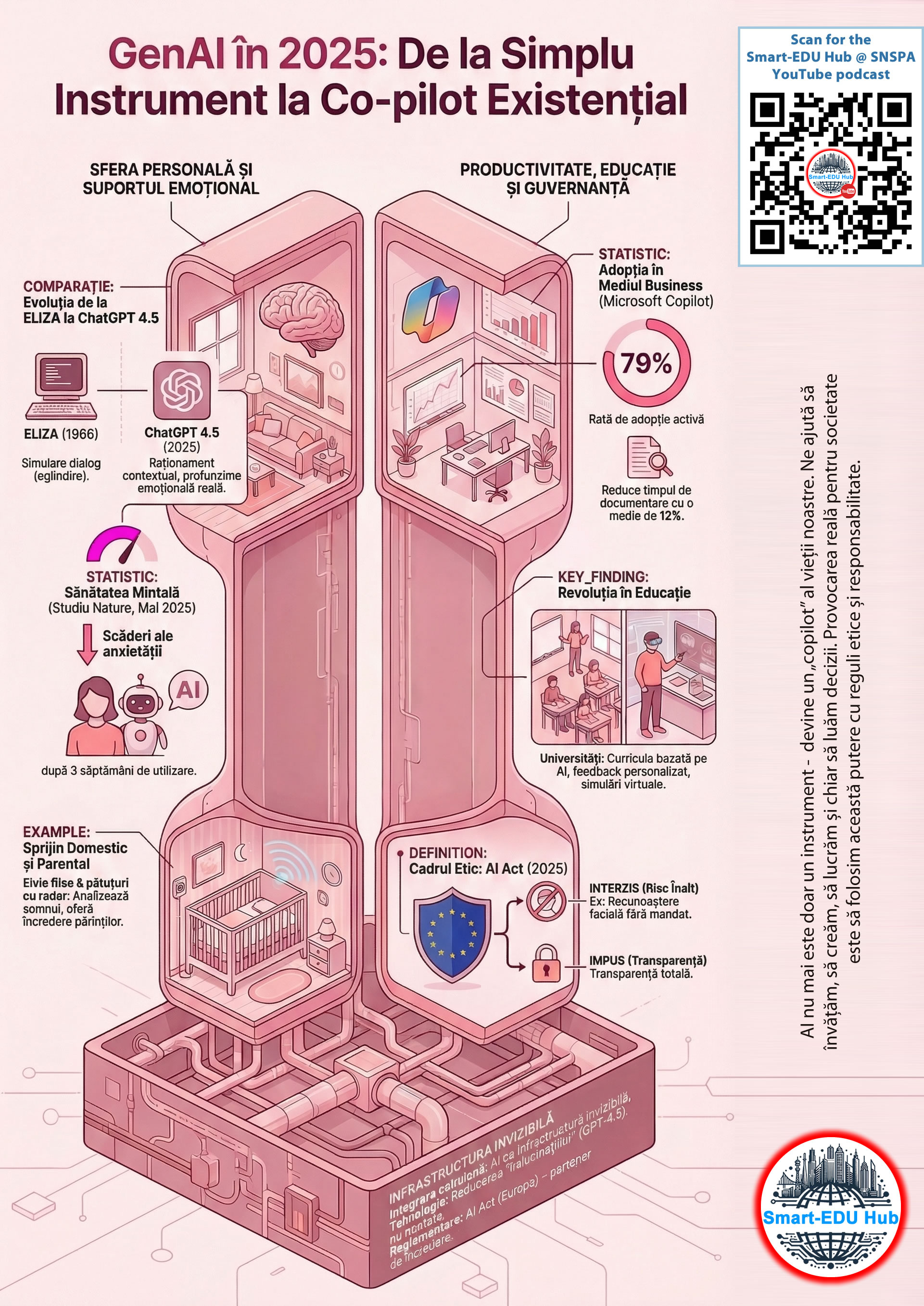 This collection of posters and infographics explores key themes in Artificial Intelligence through a structured and accessible visual format grounded in articles published in All In on Tech, the science news magazine of the Smart Cities and Regional Development Digital Library. Each poster distills contemporary technological developments and societal implications of AI into clear visual syntheses intended to stimulate critical engagement. Every infographic is complemented by a dedicated YouTube podcast episode hosted on the Smart-EDU Hub @ SNSPA channel, accessible by scanning the QR code displayed on each poster.