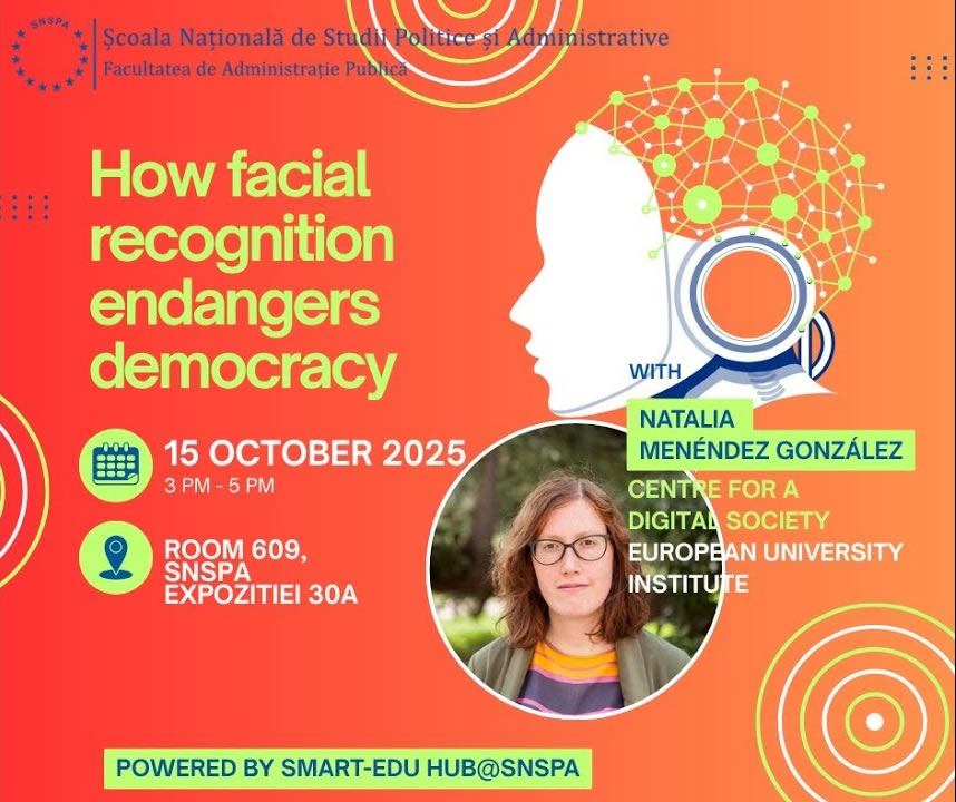 The workshop, introduced by Professor Cătălin Vrabie, focused on the democratic implications of facial recognition technology, featuring Natalia Menéndez, a legal scholar from the European University Institute. The discussion began with a technical clarification of what facial recognition entails: a probabilistic biometric system used for identification, verification, or categorization based on facial images. The speaker distinguished between traditional biometric methods and AI-enhanced facial recognition, emphasizing how artificial intelligence has increased accuracy, scalability, and opacity (the “black box” effect), while also enabling controversial applications such as emotion detection, lie detection, and even purported inference of sexual orientation or criminal propensity. These latter uses were presented as scientifically disputed and ethically troubling, often compared to discredited practices such as physiognomy. |